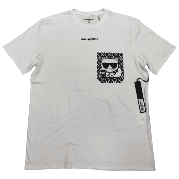 Añade un toque de lujo a tu atuendo con la Camiseta Karl Lagerfeld Paris. Esta camiseta blanca destaca por su diseño único, que presenta un estampado de Choupette, la icónica gata de Karl Lagerfeld, y un elegante bolsillo sintético. Confeccionada con algodón de alta calidad, ofrece comodidad y un ajuste perfecto. Ideal para quienes buscan combinar estilo y originalidad en su vestimenta. Disponible en La Tía de la USA con envío gratis en Colombia. ¡Haz de esta camiseta en tu colección!