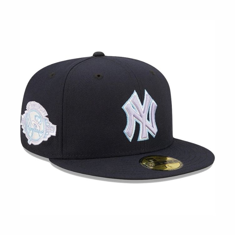 La gorra New Era 59FIFTY New York Yankees 100th Anniversary en un elegante color azul marino con visera inferior en lavanda. Directamente desde Estados Unidos, esta gorra es un homenaje a los 100 años de los legendarios New York Yankees. Con el icónico logo de los Yankees bordado en la parte delantera y un diseño completamente cerrado en la parte trasera, esta gorra destaca por su estilo y calidad.